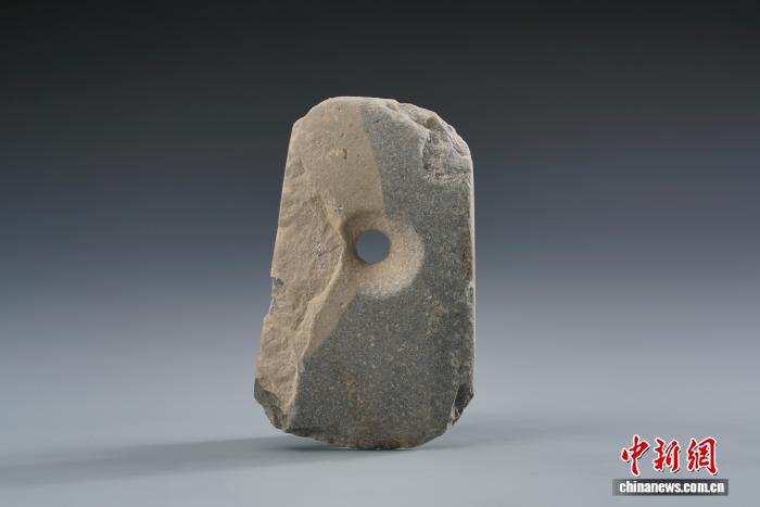 图为出土的石钺。(贵寓图,咸阳市文物考古考虑所供图)