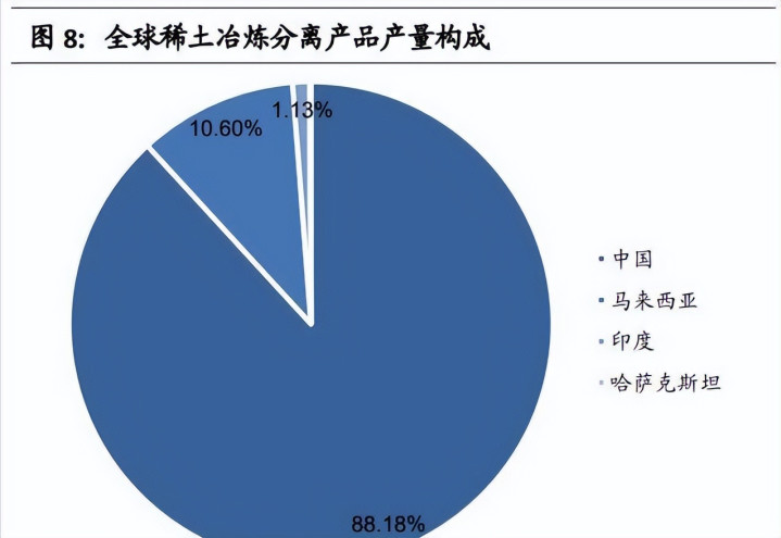 好意思国提纯技能逾期,中国能稳产99.999%纯度。重稀土如镝、铽用于高温磁体,全球储量少,索求难。