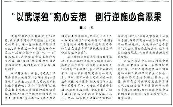 沉着军报评好意思111亿对台军售:“以武谋独”浮念念联翩,倒行逆施必食效能